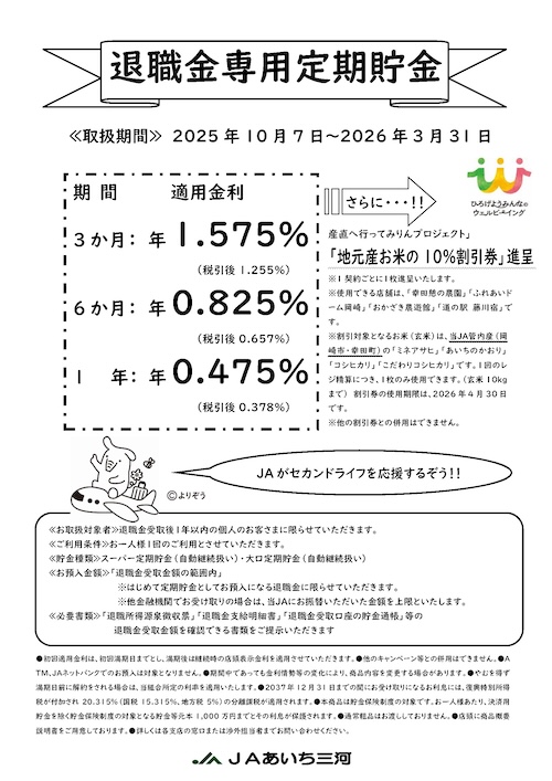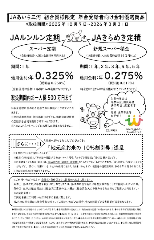 組合員様限定の年金受給者向け金利上乗せ商品です。