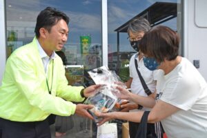 柿っとベルト、ピカッと反射キャンペーン!/筆柿を配布しながら安全運転を呼び掛け